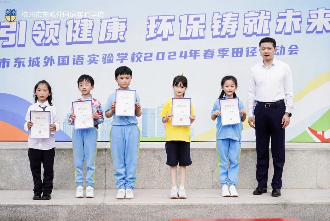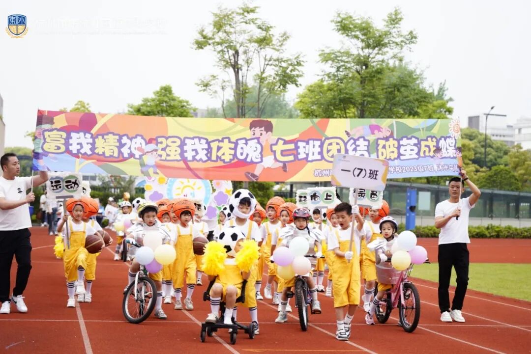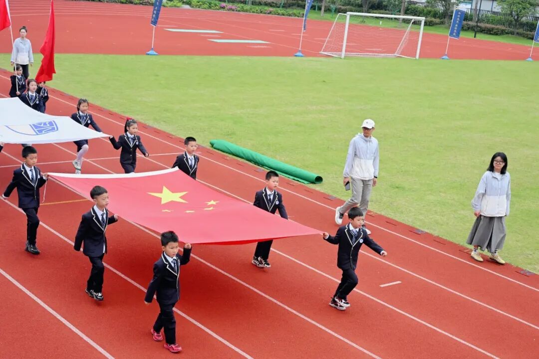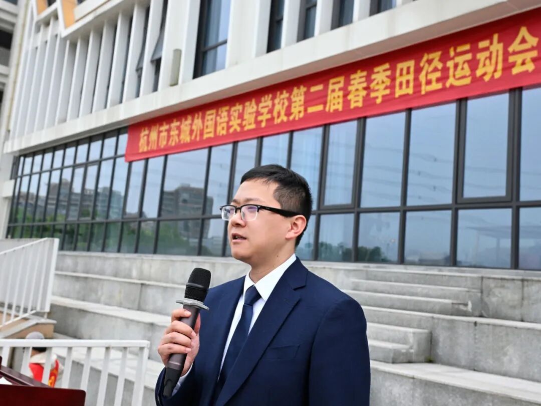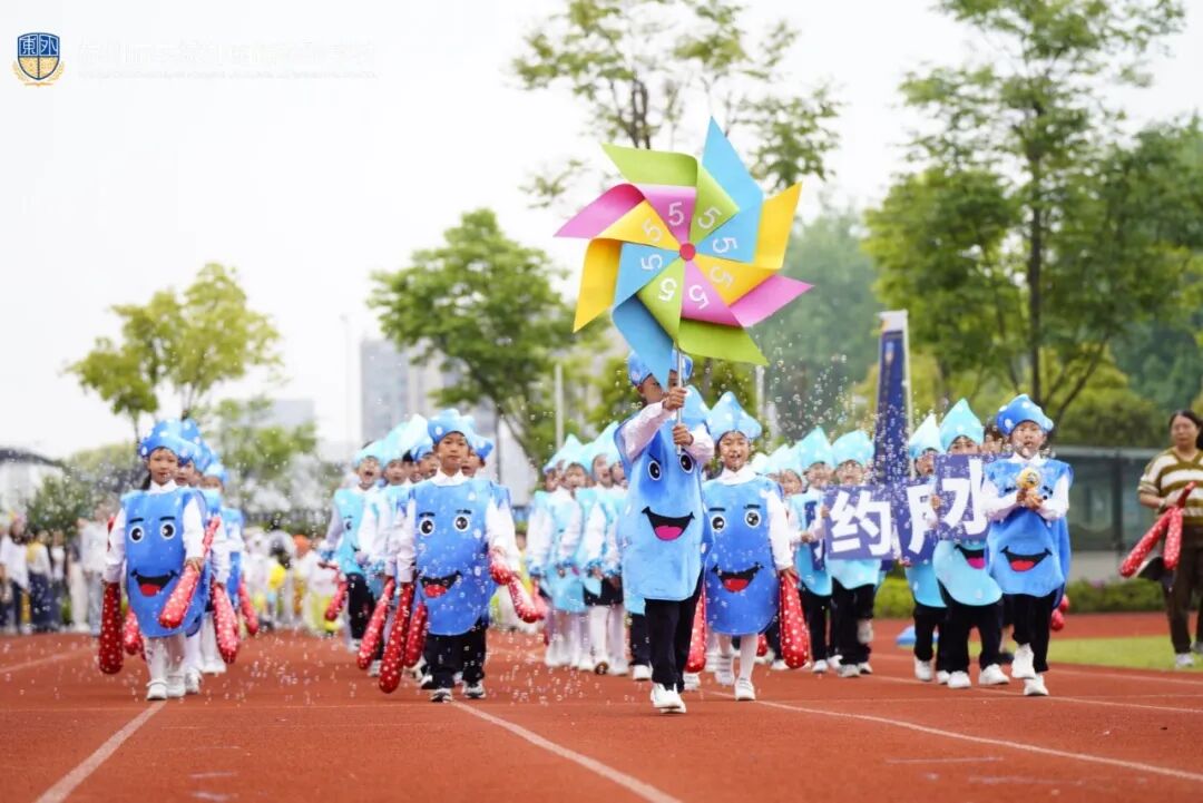 九堡街道副主任朱红梅、钱塘智慧城副主任余宏刚、牛田社区书记郭健、蚕桑社区书记金洪华、金海社区书记何文明等领导出席本次运动会开幕式,陈立剑校长宣布运动会开幕,勉励全校师生要在运动会上拼搏进取,砥砺奋进。随后,裁判员代表王嫣红与运动员代表米书杭进行庄严宣誓。
