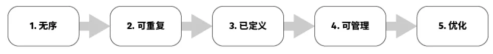 在隐私保护领域,美国会计师协会(American Institute of Certified Public Accountants, Inc.)及加拿大会计师协会(Canadian Institute of Chartered Accountants)基于GAPP(Generally Accepted Privacy Principles,一般公认隐私准则)和CMM(Capability Maturity Model,能力成熟度模型),开发出了常用的隐私保护能力成熟度评价模型AICPA/CICA PMM(Privacy Maturity Model)。该模型为隐私计划的成熟度评估提供了有效的可用手段,使用者同时可借助模型确定计划应当推进的下一步并根据内外部基准衡量计划推进的项目进展。在PMM中,一个组织的隐私计划成熟度被分为5个等级: