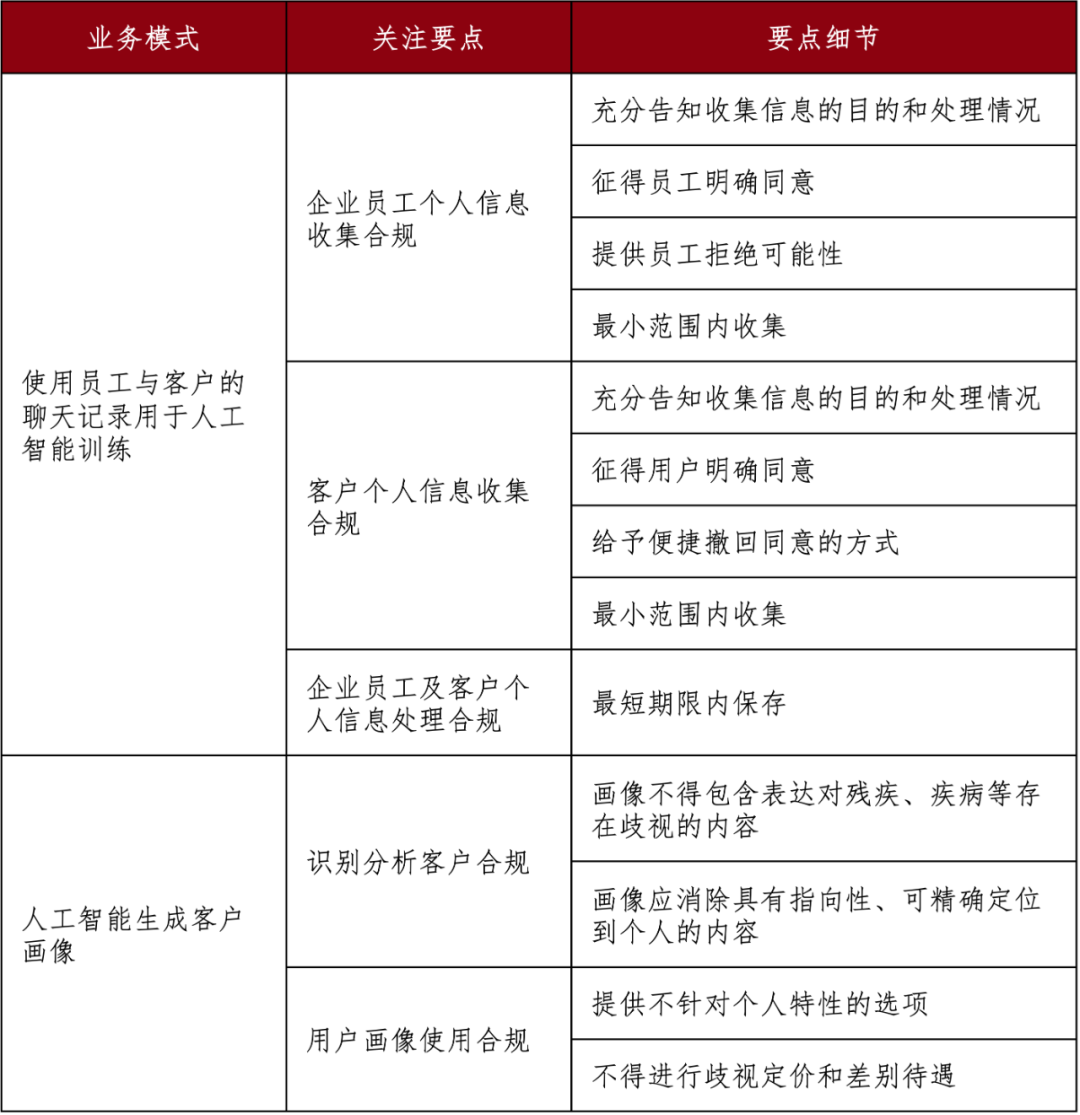 总体来说,数据处理的各环节需遵守合法性、正当性、必要性三项原则,即数据处理行为符合取得同意时所做承诺、处理数据的目的明确及合理、处理数据的方式具有必要性。除前述三大合规义务外,数据处理各环节亦具有例如以下的合规关注要点。