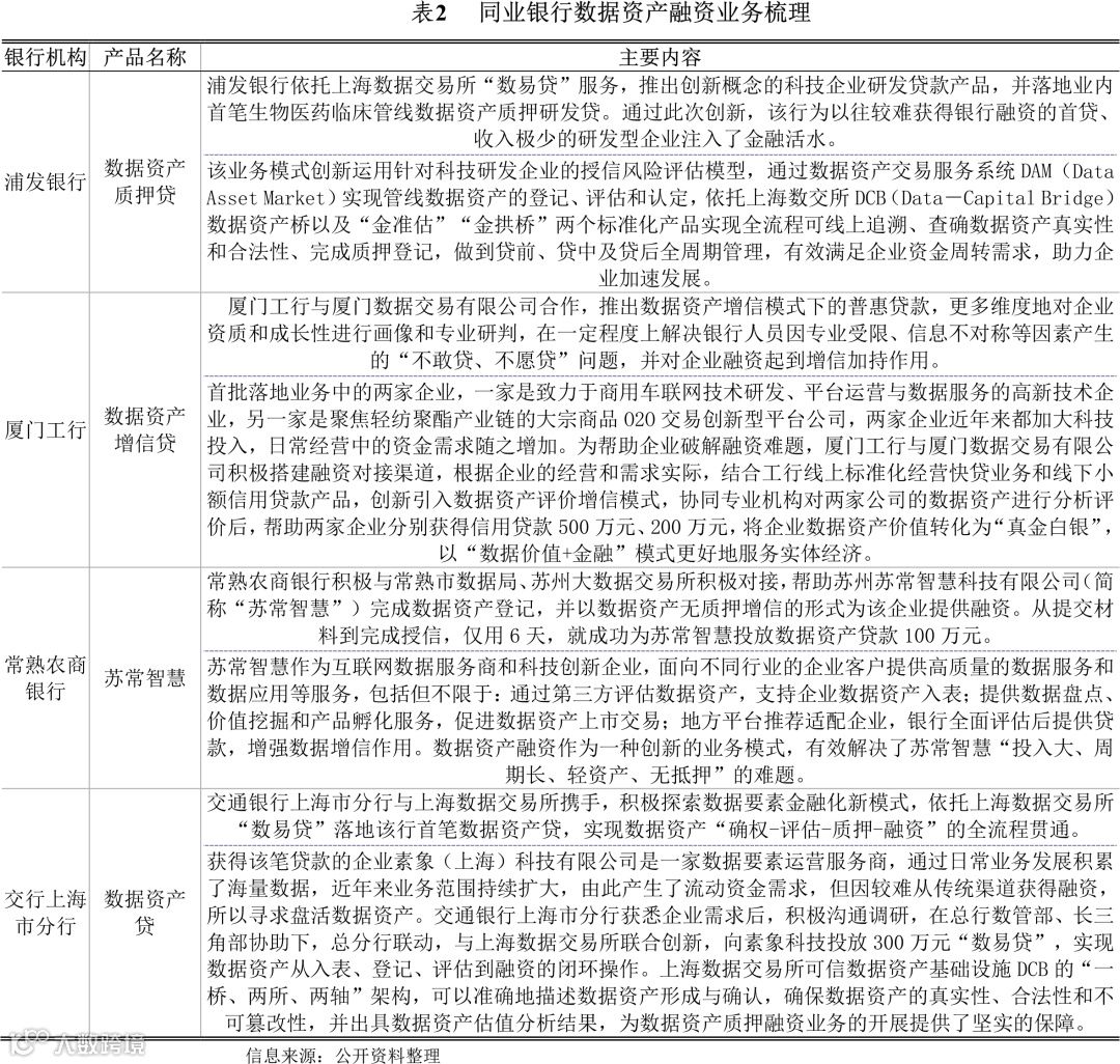 随着人工智能、大数据等相关技术的应用日益普遍,金融机构的数据资产融资业务将迎来更大的发展空间。例如,今年2月份,中国建设银行上海市分行与上海数据交易所合作,发放了基于上海数交所推出的数据资产信贷服务产品“数易贷”的数据资产质押贷款;5月份,北京银行为一家大数据公司提供了数据资产融资支持,成为北京市首笔在北京国际大数据交易所完成质押登记的数据资产质押贷款。已有案例均表明,数据资产融资业务具有较好的可复制和推广的特点。