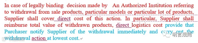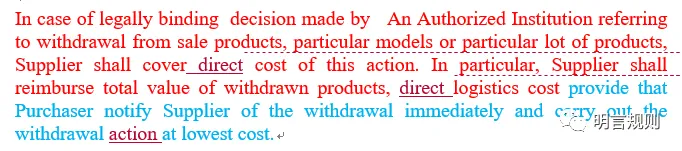 举例2:来源于一份与GE的产品销售合同,涉及客户供应产品召回问题。