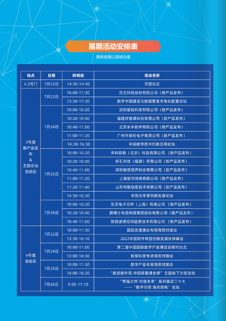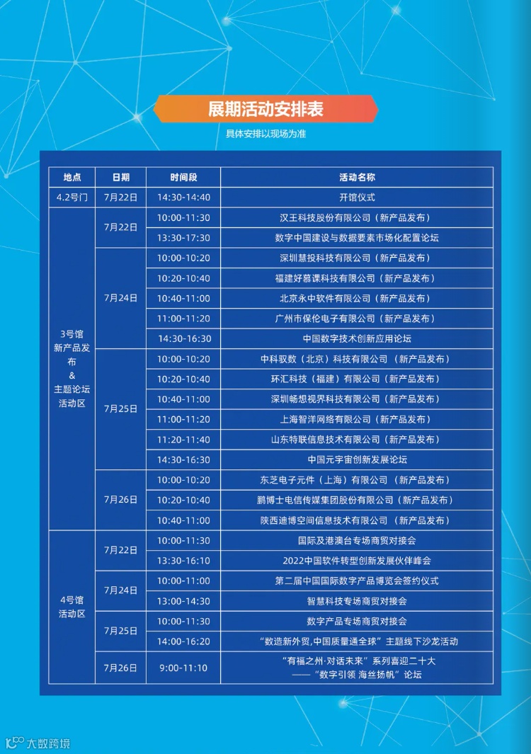 本届数博会将于2022年7月22日开幕,7月26日闭幕,展期共持续5天。(⭐7月23日上午不开放,开放时间为15:00-19:00)