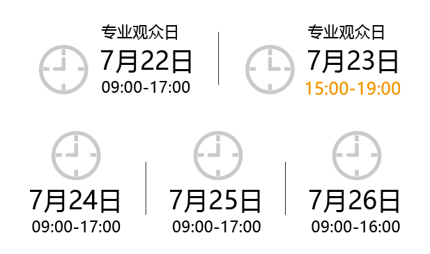 本届数博会专业观众日为7月22日(开放时间:9:00-17:00)、7月23日(开放时间:15:00-19:00),7月24日-26日为公众开放日 ,具体区别及报名方式详见下文。