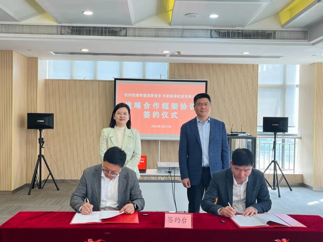 3月27日上午,钱塘智慧城管委会与市能源集团下属全资子公司杭州市新能源投资发展有限公司签订战略合作协议。区委常委、副区长,钱塘智慧城党工委书记孔德君,市城投集团党委委员、副总经理,市能源集团党委书记、董事长沈卓恒,市能源集团、市新能源投发公司、钱塘智慧城等相关部门负责人出席并见证签约仪式。