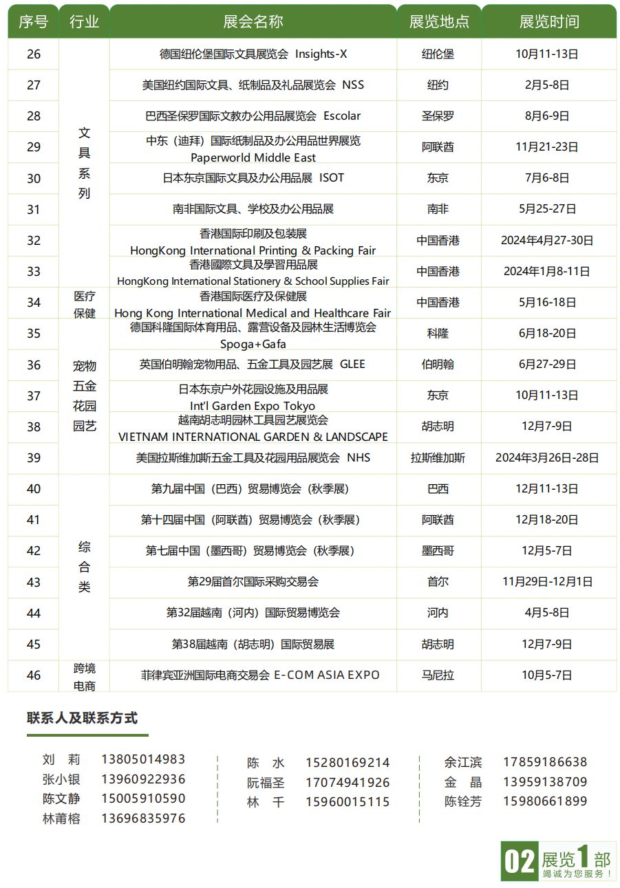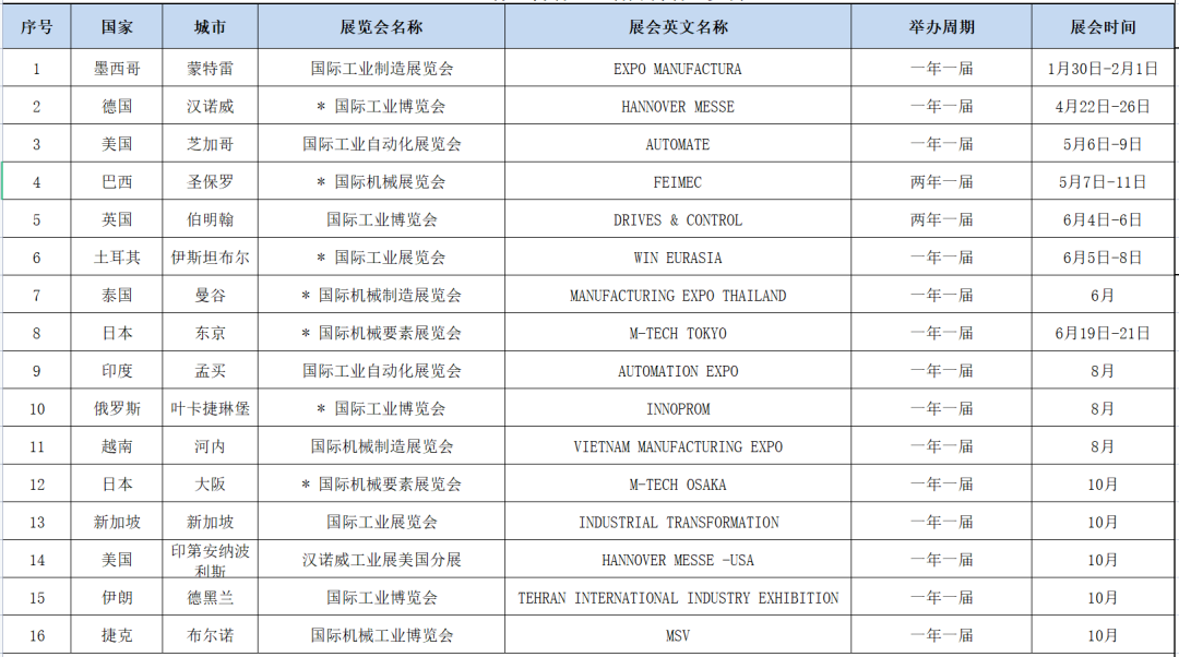 2024年北京分公司境外工业、农机、工程机械类展会组展计划: