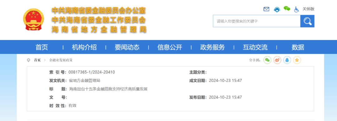 为深入贯彻落实党中央、国务院关于经济工作的决策部署,加快推动台风“摩羯”灾后重建,10月22日,海南省委金融办、省财政厅、中国人民银行海南省分行、海南金融监管局、海南证监局联合出台《金融支持经济高质量发展的十五条措施》,引导全省金融机构加大对灾后重建的保障支持力度,提升金融服务实体经济能力,促进我省经济平稳健康发展。