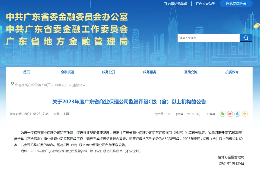 为进一步提升商业保理公司监管质效,促进行业规范健康发展,根据《广东省商业保理公司监管评级指引(试行)》等有关规定,我局组织开展了2023年度全省(不含深圳)商业保理公司监管评级工作,现已完成评级结果综合审定。监管评级从优到劣分为ABCDE五级,2023年度评为C级(含)以上的机构共60家,占参评机构总数的88%。现将C级(含)以上商业保理公司名单予以公告。