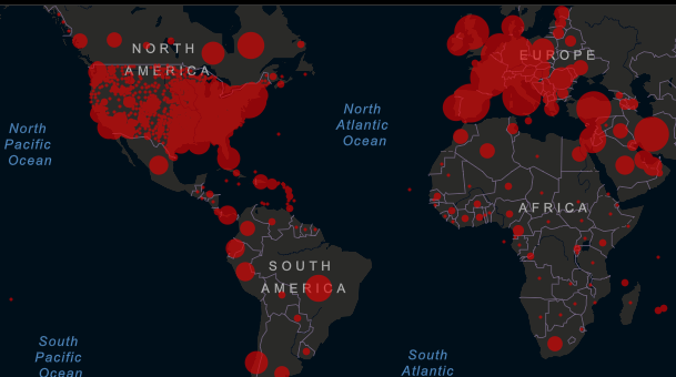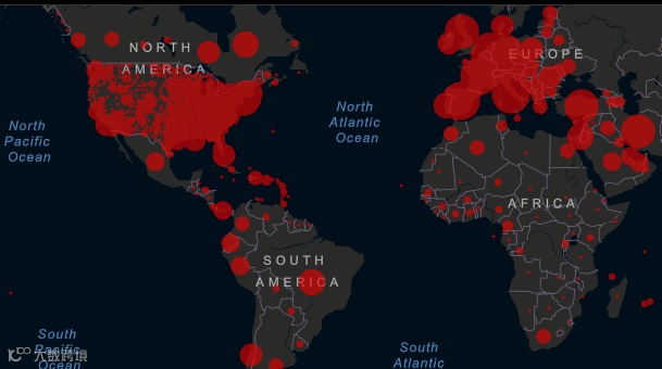 美国约翰斯·霍普金斯大学做的疫情扩散地图