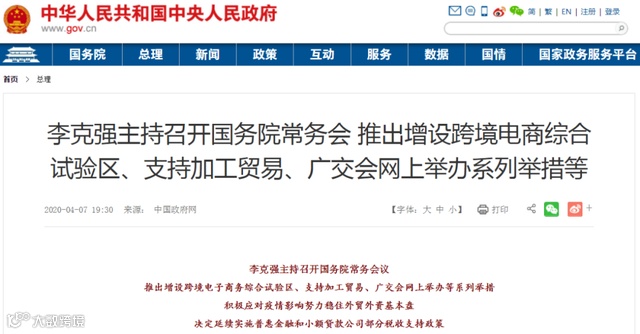 本次国常会除了广交会之外,还有两个重磅关键点:增设跨境电子商务综合试验区,支持加工贸易。