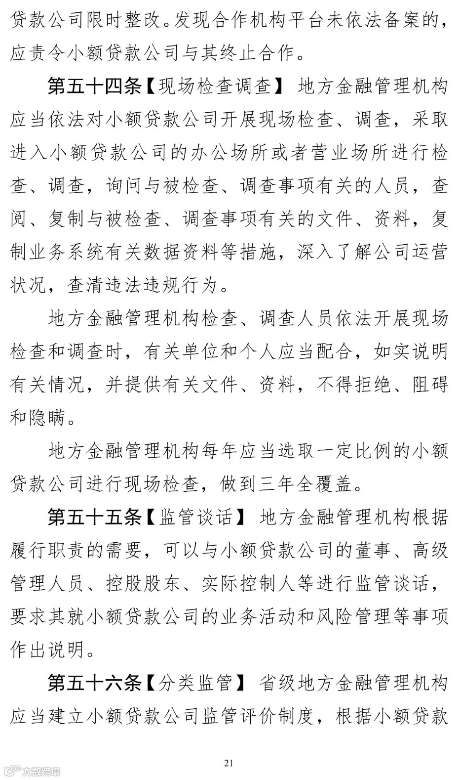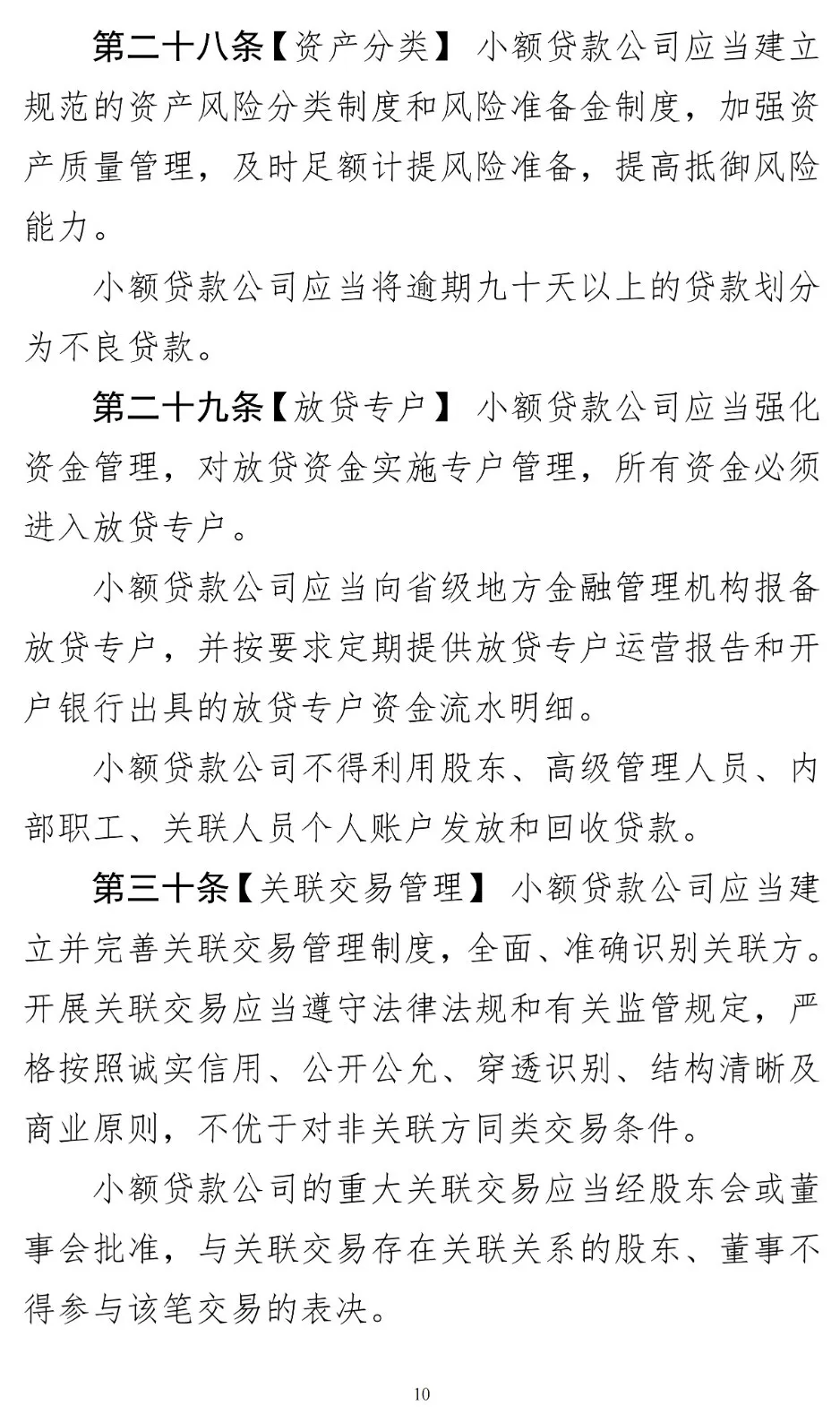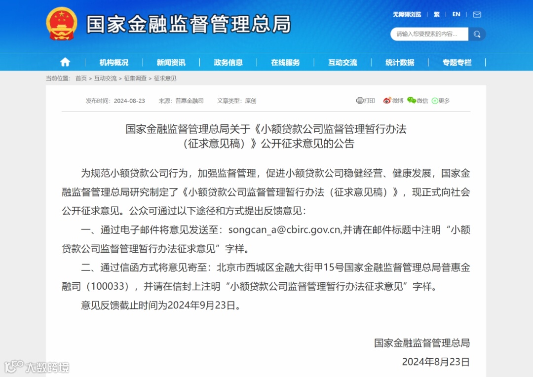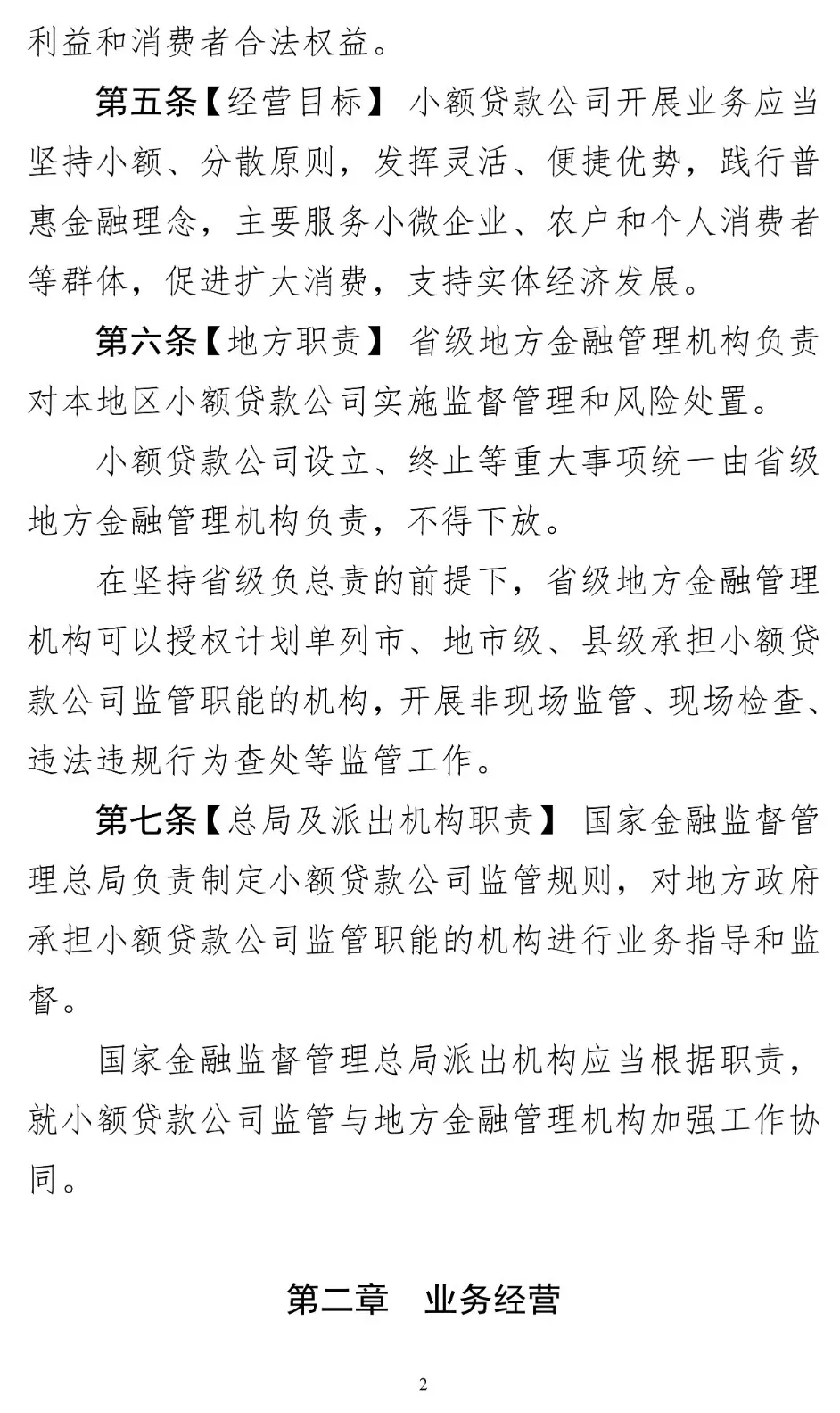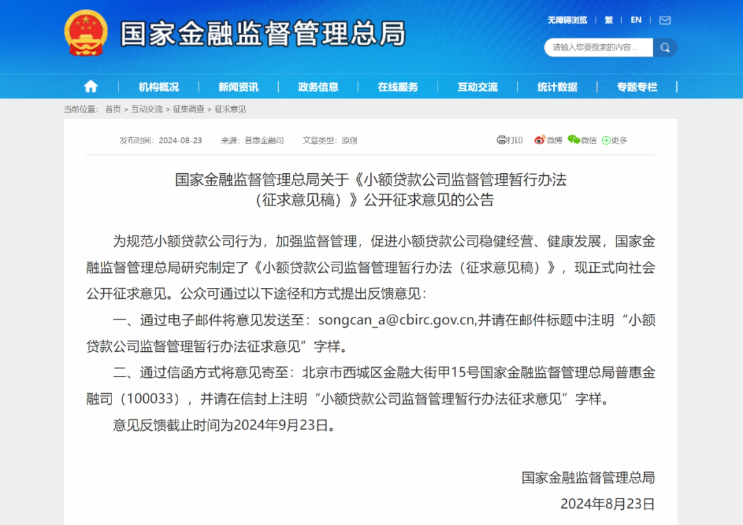 为规范小额贷款公司行为,加强监督管理,促进小额贷款公司稳健经营、健康发展,国家金融监督管理总局研究制定了《小额贷款公司监督管理暂行办法(征求意见稿)》(以下简称《暂行办法》),日前正式向社会公开征求意见。《暂行办法》共七章、六十六条,分别为总则、业务经营、公司治理与风险管理、消费者权益保护、非正常经营企业退出、监督管理、附则。