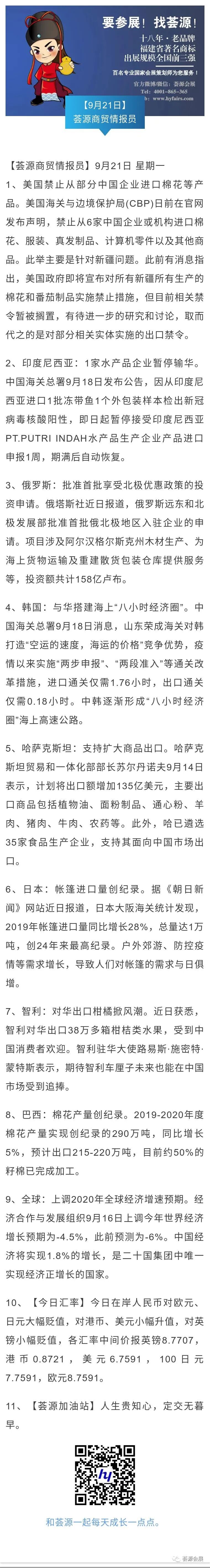 【荟源商贸情报员】9月21日分享