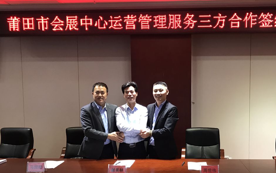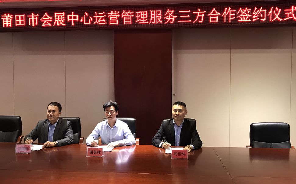 (2019年11月14日,福建荟源国际展览有限公司、广州广交会展览工程有限公司和莆田市国有资产投资有限公司签订三方合作协议)