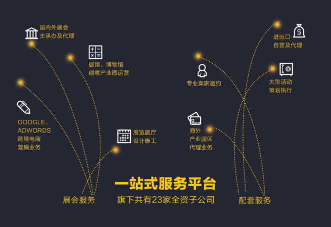 荟源展览多年来秉承“二次创业”精神,积极开拓展览创新型业务。现已发展成为以会展为中心,以展台搭建、展馆、博物馆、创意产业园运营、进出口贸易、跨境电商、海外营销服务、外贸杂志、金融投资等业务为外核,涵盖会展全产业链服务的展览集团。