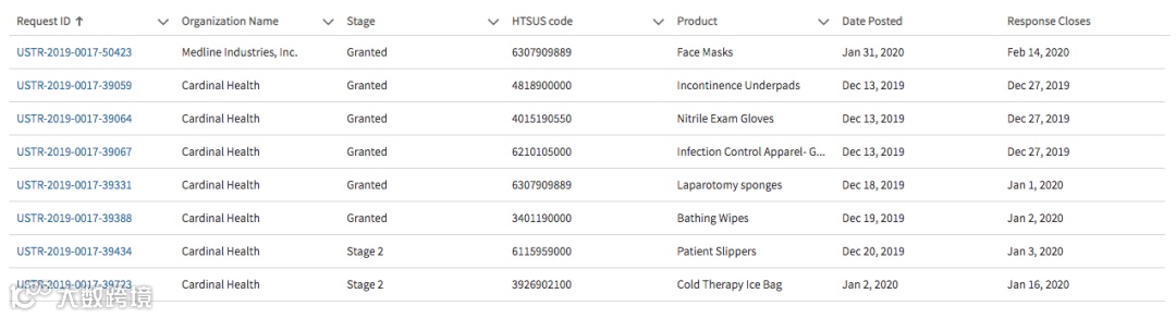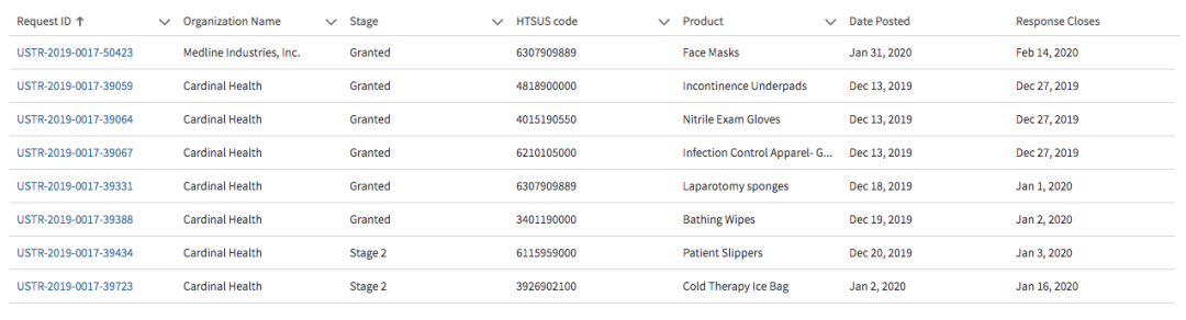 美国最大私营医疗物资商Medline Industries对103项自中国进口的商品申请了关税豁免,其中30项获批,譬如口罩、手套、消毒湿纸巾、样本采集器皿等。