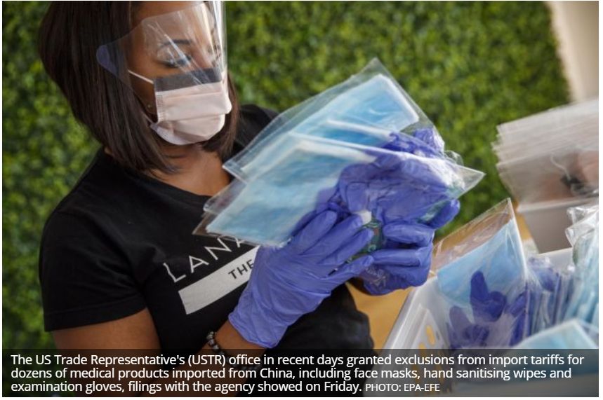 美国宣布豁免中国口罩、手套等医疗产品关税