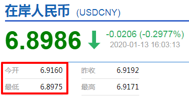 1月13日,在岸、离岸人民币一鼓作气高歌猛进,一度双双升破6.9!