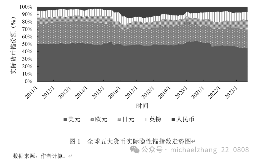 [3].张冲,叶茜茜,丁剑平. 全球货币隐性锚指数研究[J]. 国际金融研究,2023(01):52-61。