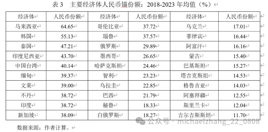 [1].丁剑平,方琛琳,叶伟. “一带一路”区块货币参照人民币“隐性锚”分析[J]. 国际金融研究,2018(10):23-32。
