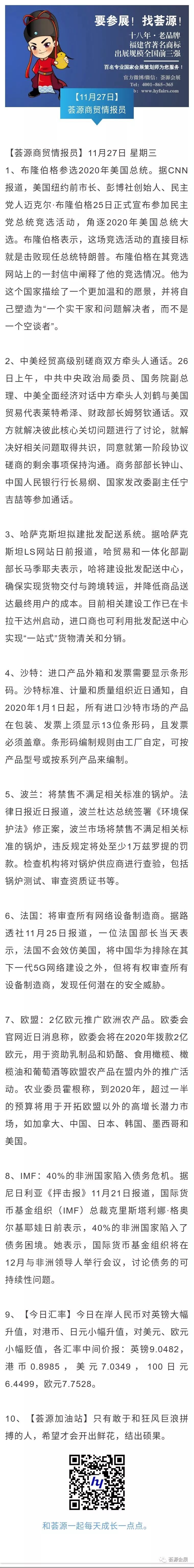 【荟源商贸情报员】11月27日分享