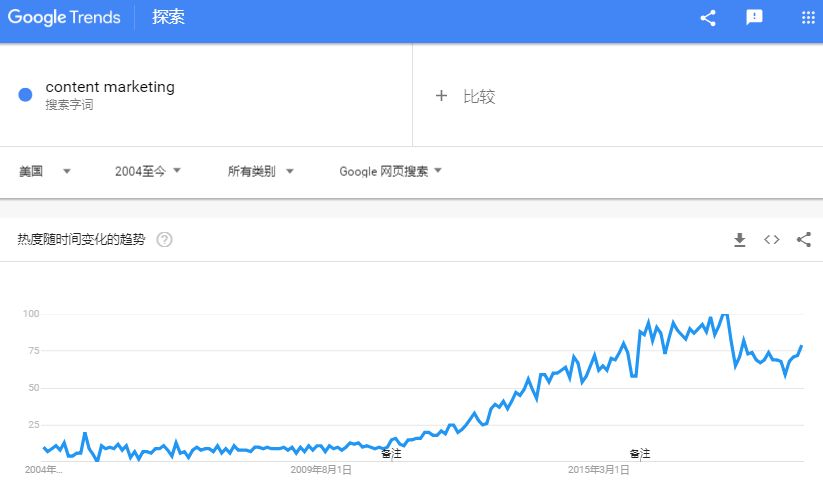 如果说,广告是帮助我们与客户实现连接,那内容,则是我们与客户之间实现沟通共鸣的核心。近年来,“内容营销”话题越来越引起热议,就从谷歌趋势来看,content marketing的热度可谓是一路飙升。