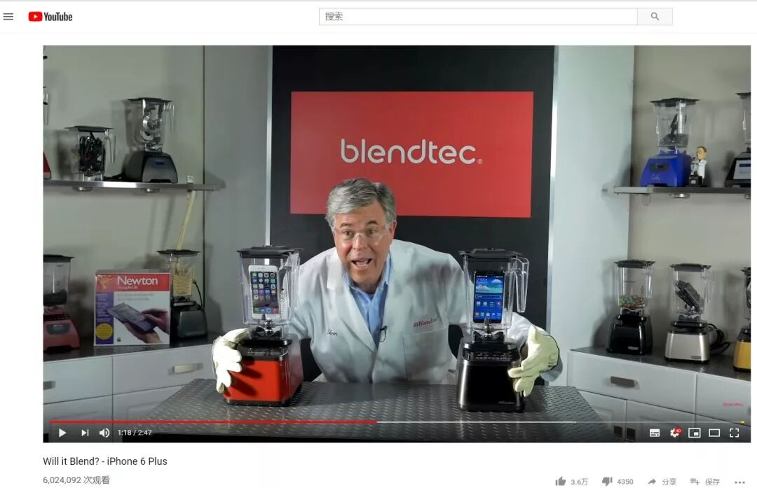 美国壁料理机品牌Blendtec就是在YouTube上通过一些列的will it blend的视频火起来的。基于对料理机用户的需求定位(质量好,不容易坏),结合苹果产品iPhone, iPad等产品推出创作了一系列搅拌苹果产品的视频,手机或者平板碎了,但是搅拌机依旧丝毫无损。