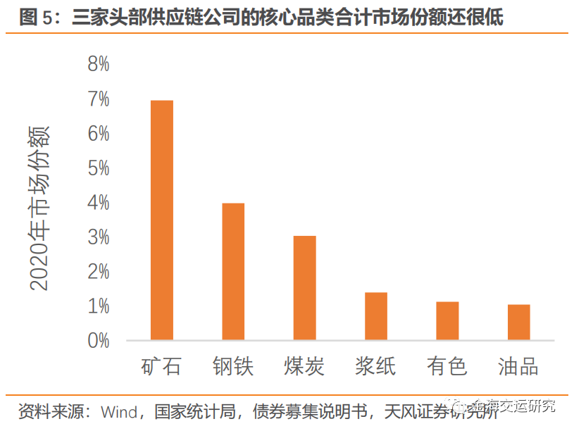 头部供应链公司的未来增长空间大。一方面,大宗供应链核心品类的市场集中度还很低,头部公司具备竞争优势,未来市场份额提升空间大。另一方面,中国大宗供应链头部公司的规模仅为国外龙头的1/4左右,而中国消费了全球一半左右大宗商品,所以国内龙头的成长空间大。