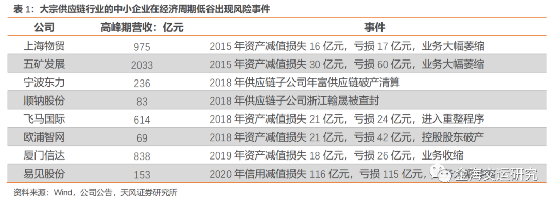 风控强的供应链公司才能活得久。供应链公司负债率高、利润率低、应收款多,需要严格控制价格风险、货权风险、信用风险等。经营时间长、规模大的公司往往建立了严密的风控体系,风险相对较小。而部分管理不够规范的民营企业,可能在经济周期低谷发生风险事件。