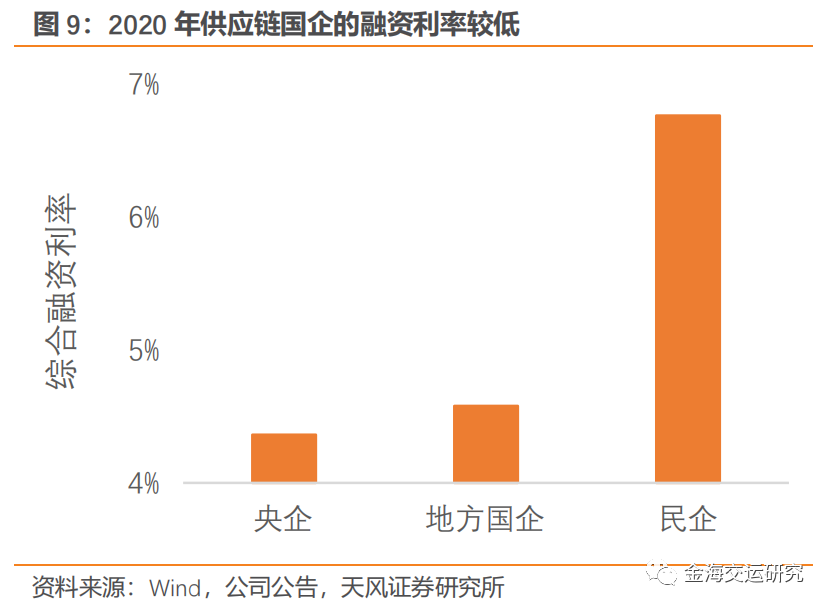 资金成本决定只有国企才能做大。供应链业务需要提供垫资服务,融资能力和融资成本是发展业务的关键因素。央企和地方国企的融资能力强于民企、融资成本低于民企,更具有竞争力。