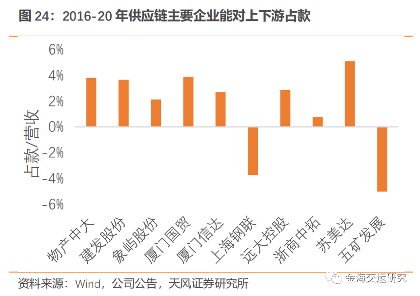 市场认为,供应链业务需要垫资,未来经营性现金将持续流出。我们认为,业务高增长带来垫资需求增长,导致经营性现金流出,如果业务停止增长,经营性现金将流入。2016-20年,多数供应链公司已经具备对上下游的占款能力。