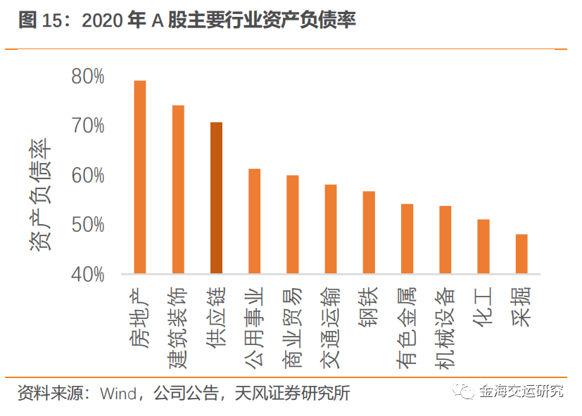 市场认为,供应链公司资产负债率达到70%左右,杠杆高。我们认为,尽管供应链公司财务杠杆高,但是经营杠杆和价格杠杆都很低,所以综合杠杆并不高。