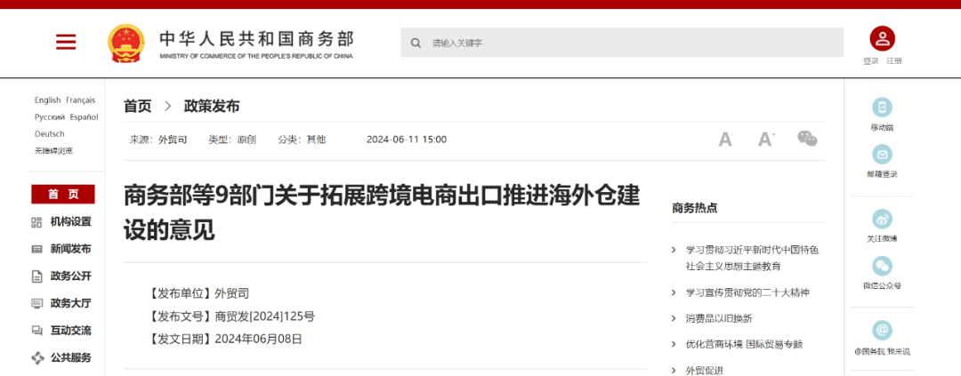 (九)增强跨境电商物流保障能力。促进中欧班列沿线海外仓建设,积极发展“中欧班列+跨境电商”模式。支持物流企业结合跨境电商行业发展特点,加强海运、空运、铁路、多式联运等运输保障能力建设。鼓励物流企业与东道国寄递企业开展合作,提升“最后一公里”履约能力。