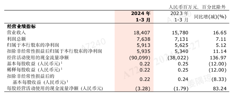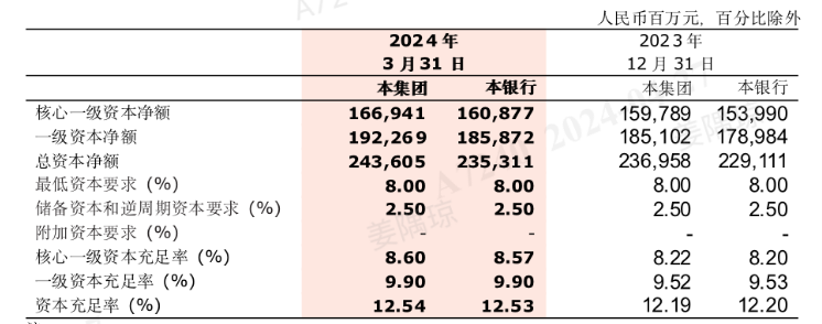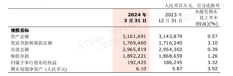 来源/浙商银行2024年一季度财报