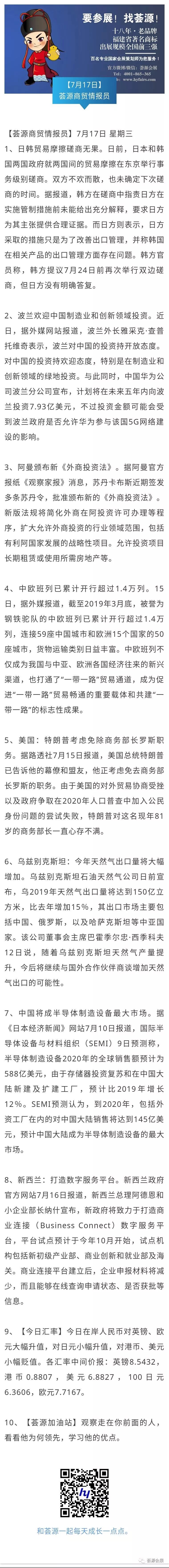 【荟源商贸情报员】7月17日分享