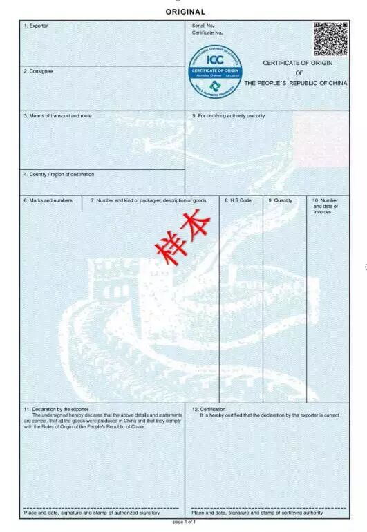 🔼 贸促会优惠原产地证书(样本)