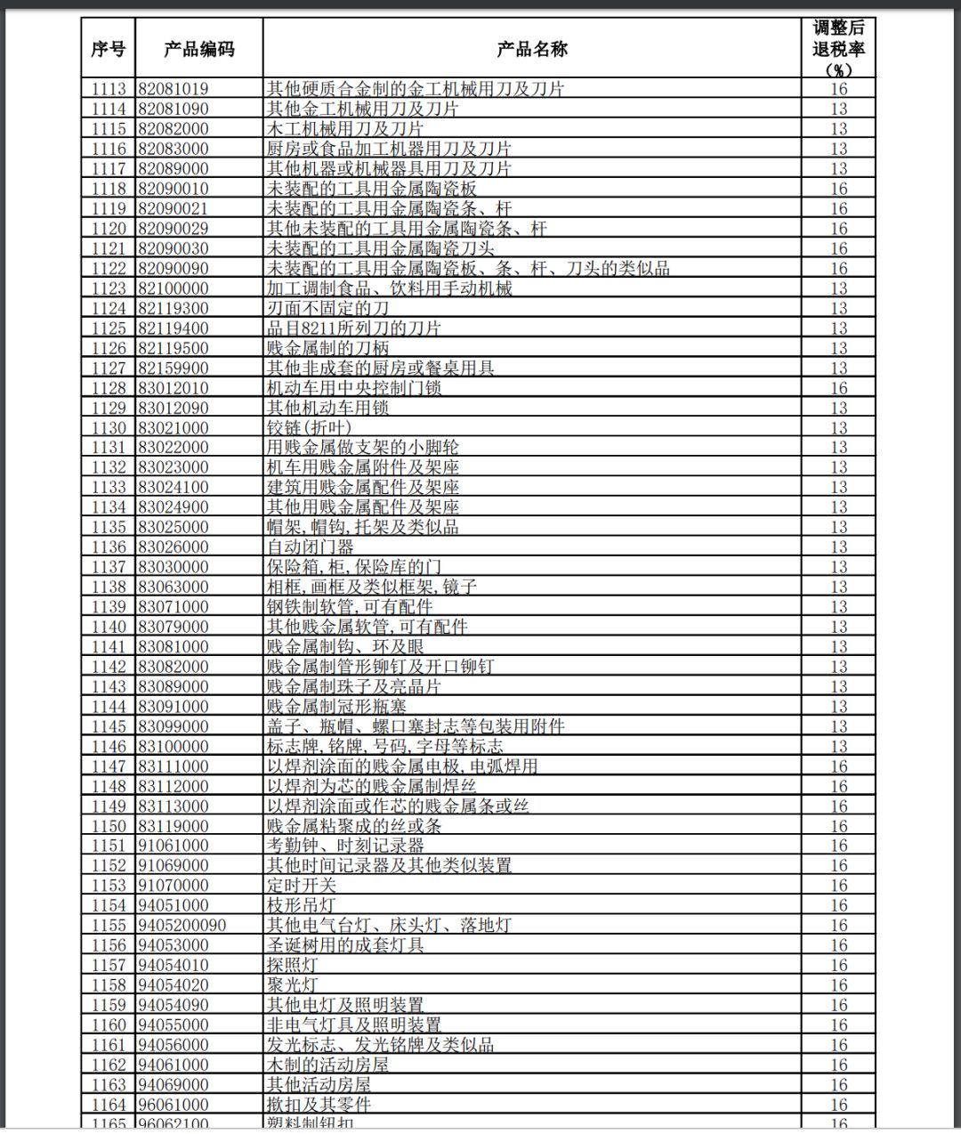 下面是列明的出口退税率提高的产品清单(太长了,截取部分):