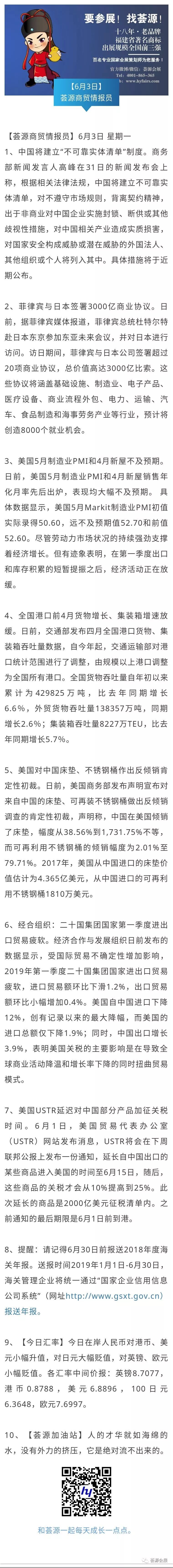 【荟源商贸情报员】6月3日分享