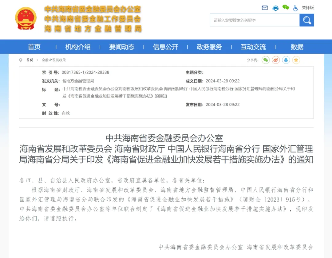 第十八条 本办法从2023年1月1日起实施,有效期至2025年12月31日,申请奖补事项应发生在此期间内。本办法施行后,《海南省政府金融工作办公室 海南省财政厅关于印发〈海南省支持金融服务业发展专项资金管理暂行办法〉的通知》(琼金办〔2016〕44号)同时废止。