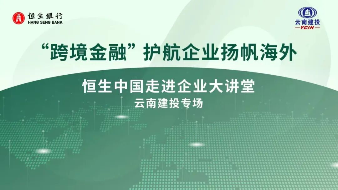本次我们走进云南省属企业“走出去”的排头兵——云南建投,打造此次专场活动,旨在为“走出去”企业分享多维度的跨境金融资讯观点,并运用恒生的跨境金融优势及金融专长,更好的助力云南建投打好“境外业务优势牌”,探索金融机构与企业的深度合作之路。