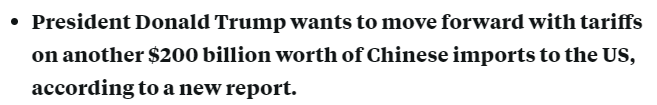 Business Insider:最新报告显示,特朗普将向另外2000亿中国商品征税