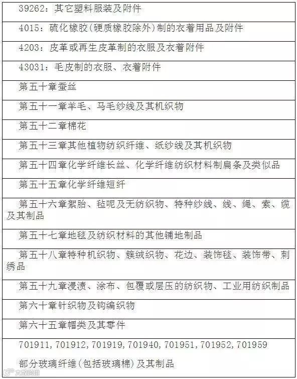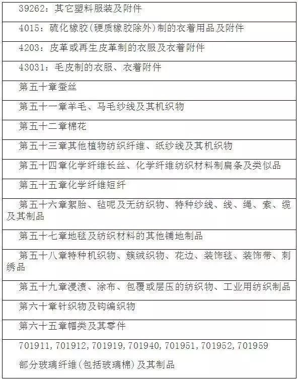 涉及的纺织服装统计项下产品包括:
