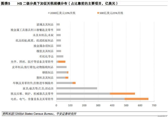 如果说之前两轮共计500亿美元的加税清单对中国出口企业的影响还没有那么明显,那么这一份价值2000亿美元的商品清单涉及6031项产品,占据了中国去年向美国出口总额的38%-46%。
