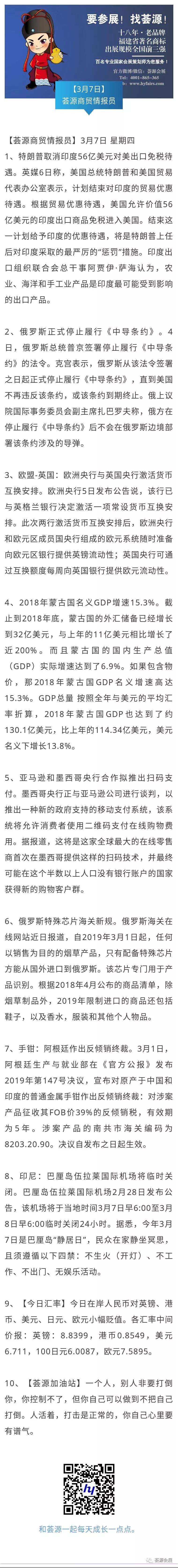 【荟源商贸情报员】3月7日分享