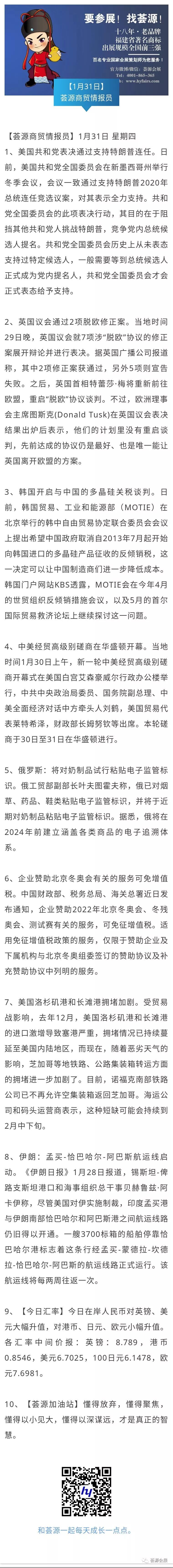 【荟源商贸情报员】1月31日分享