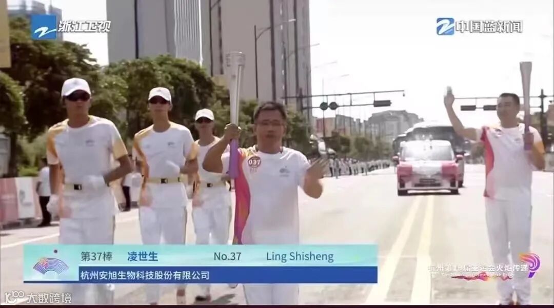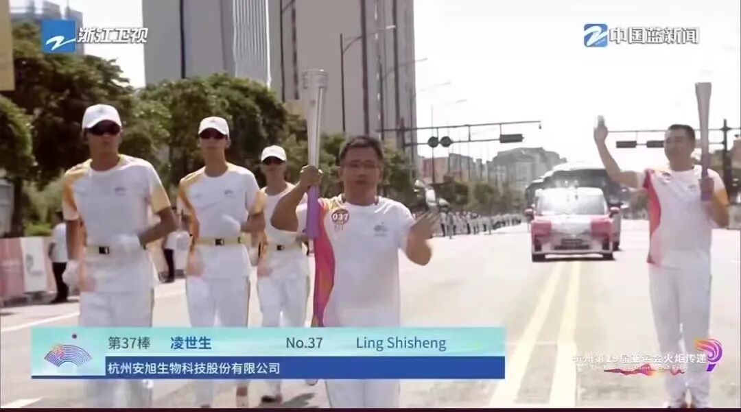 今天上午,杭州第19届亚运会火炬传递来到舟山站,传递路线全长约10.9公里。本次传递由170名火炬手接力传递,钱塘智慧城企业杭州安旭生物科技股份有限公司董事长凌世生担任第37棒火炬手。