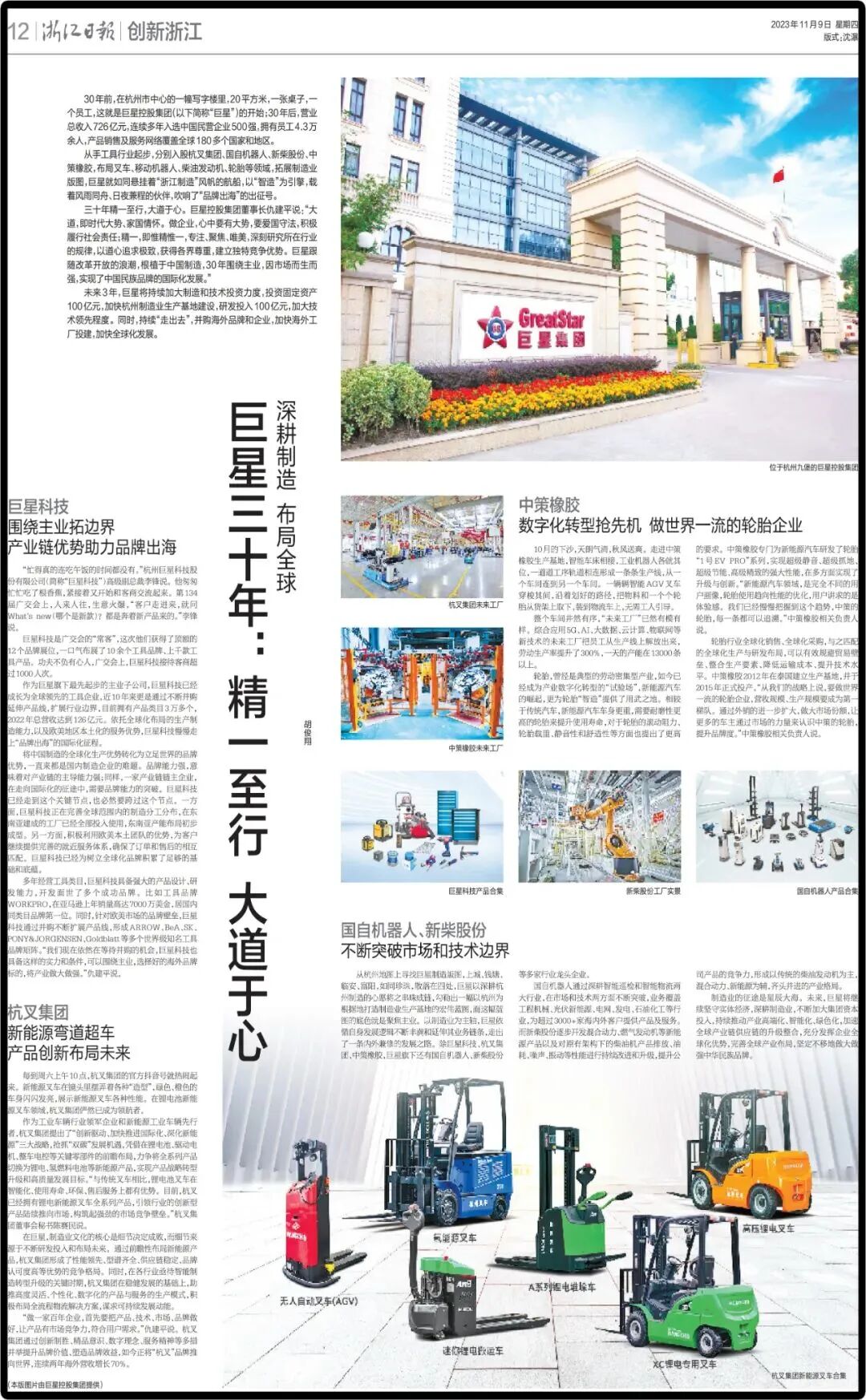 11月9日,《浙江日报》刊登报道《巨星三十年:精一至行 大道于心 深耕制造 布局全球》,讲述了智慧城企业巨星控股集团30年发展历程。