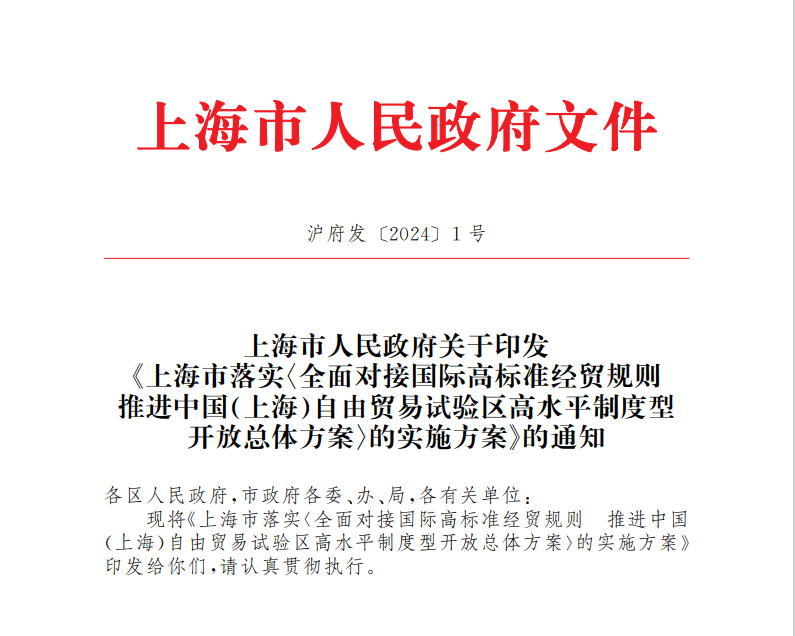 上海市落实《全面对接国际高标准经贸规则推进中国(上海)自由贸易试验区高水平制度型开放总体方案》的实施方案