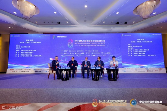 下午第二场圆桌论坛由钜惠保理总经理吴鹏翎主持,论题为“区块链、大模型、AI与供应链金融”。吉林银行交易银行部总经理杨欣华,兆企供应链管理董事长徐琪,河南德亿数科董事长张延,万向区块链副总经理、产品研发负责人张盛参与了此次讨论。