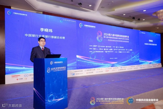 李晓玮在大会上发表了题为“以金融高质量发展 为融通产业持续注入新动能”的精彩演讲。他表示,发展数字经济是推动产业高端化的加速器,大数据、人工智能、区块链等新技术应用不断深化发展,深刻变革供应链金融业务的内涵外延、运营模式和风控机制。中国银行把科技赋能作为推动高质量发展的关键点,利用新兴金融科技手段持续深化供应链金融的智能化、场景化建设,为产业数字化升级注入动能。中国银行在这方面做出了有益实践,围绕行业服务场景,发挥中国银行供应链可扩展、可延伸的特色优势,围绕不同的产业特色化的金融需求,现已累计发布建筑链、装备链、医药链、汽车链等十个行业子链。