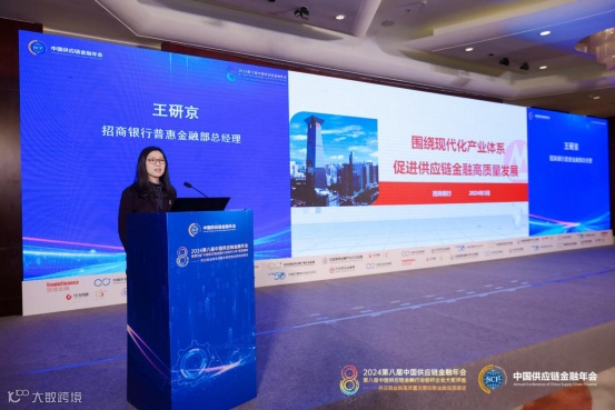 王研京在以“围绕现代化产业体系 促进供应链金融高质量发展”为主题的演讲中提到,促进供应链金融高质量发展,是招商银行践行金融强国战略、做好科技金融、普惠金融、数字金融等“五篇大文章”的重要实践。其经过多年的探索,搭建了完善的供应链金融产品体系,通过创新“全行服务一家”模式,助力核心企业赋能全国供应链生态。她进一步提到,服务实体经济是金融的宗旨,支持现代化产业体系的建设是招商银行供应链金融的工作方向。招商银行愿通过政策解读、顶层设计到模式融合为现代化产业体系提供持续、全面的高质量服务,高度重视自身在现代化产业体系中的“粘合剂”、“催化剂”作用,愿同产业链核心企业及合作伙伴携手共进,助力产业链融通发展,加快形成新质生产力。