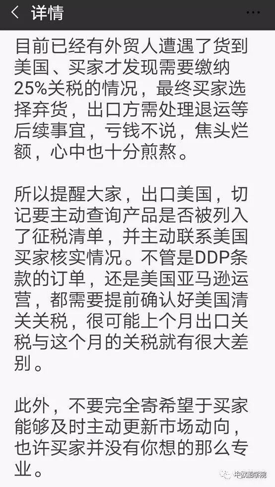 所以提醒大家,出口美国,切记要主动查询产品是否被列入了征税清单,并主动联系美国买家核实情况。不管是DDP条款的订单,还是美国亚马逊运营,都需要提前确认好美国清关关税,很可能上个月出口关税与这个月的关税就有很大差别。